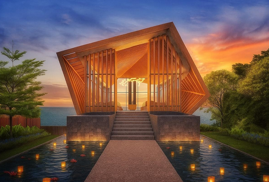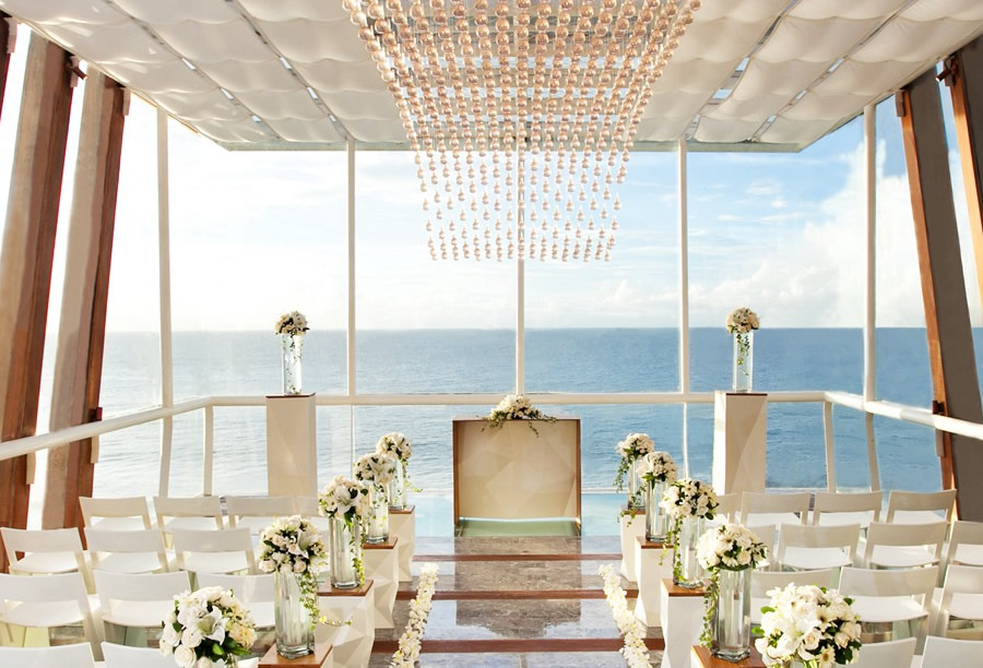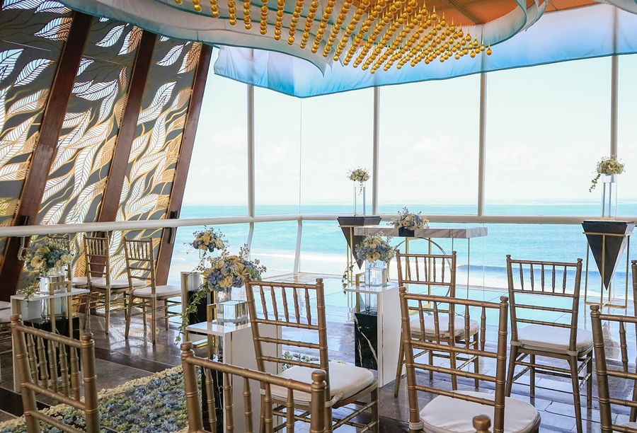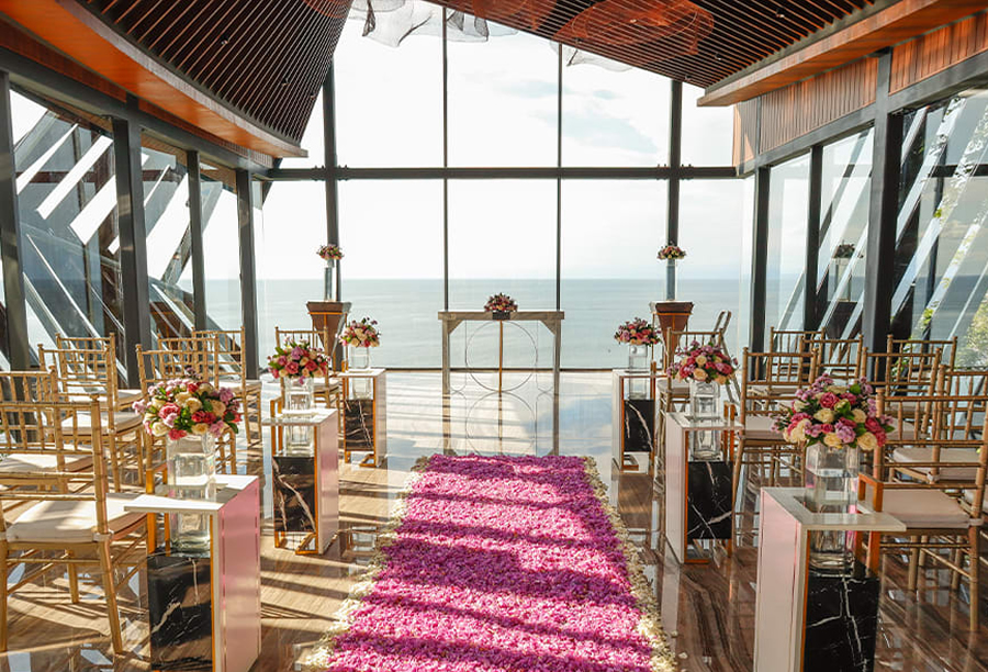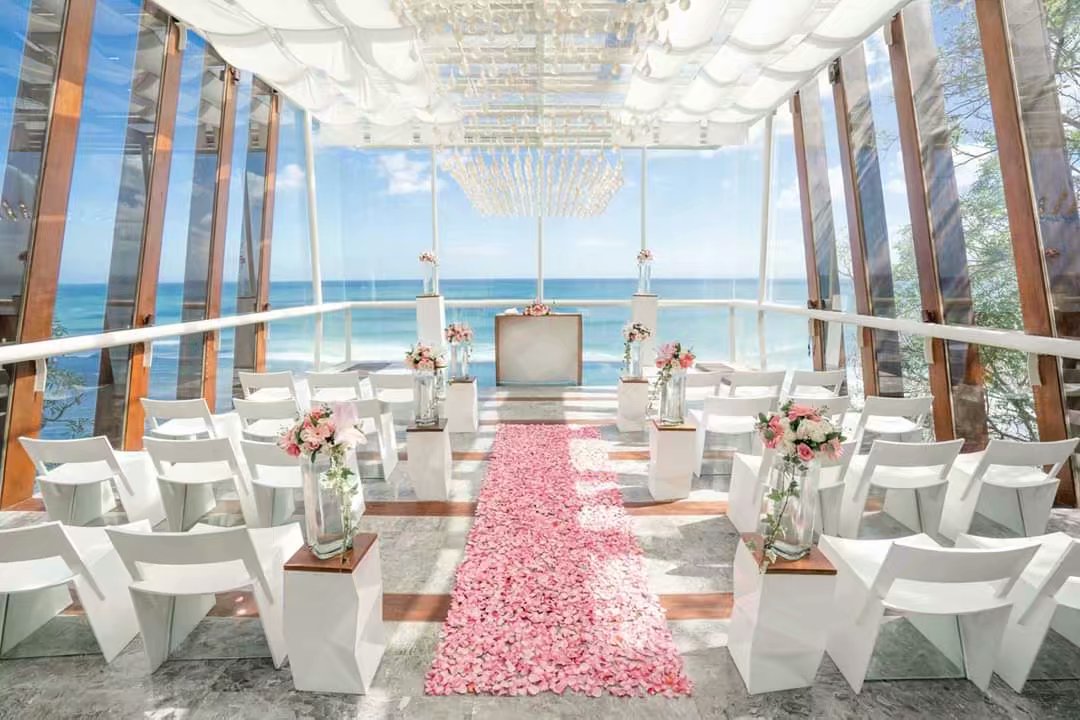 標誌性的懸崖邊教堂,是一座融合玻璃面板與實木橫梁的現代建築傑作。以360度全景印度洋作為婚禮的絕美背景。