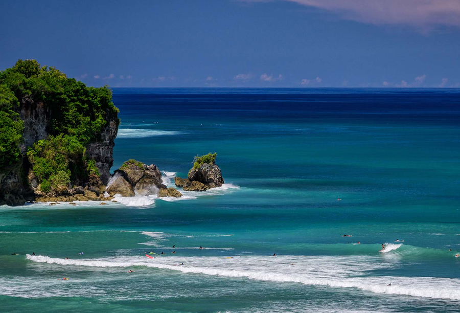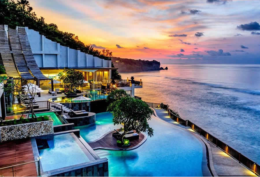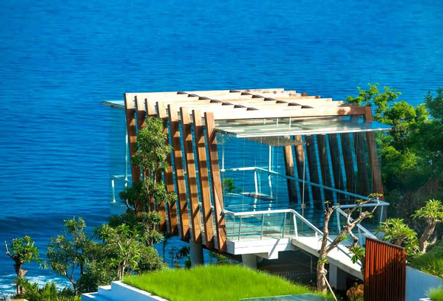 教堂位於位於峇里島南端的烏魯瓦圖,眺望印度洋的壯闊與深藍,建築風格現代優雅融入自然當中。