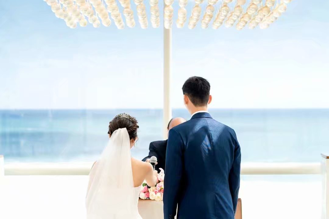 開啟甜蜜的婚後儀式。在沐浴微風的開放空間中,