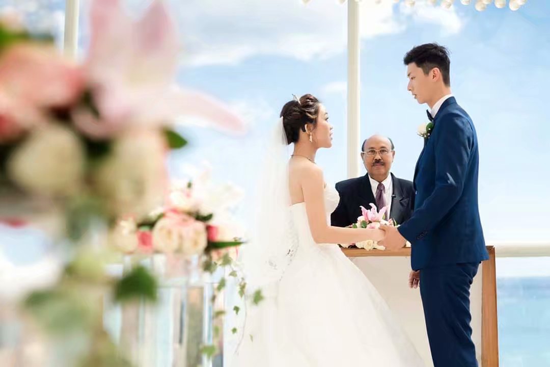 新人走過散落著雞蛋花瓣的紅毯,夕陽將一切染成金色。巴厘島烏魯瓦圖安納塔拉經典的現代教堂座落於高聳懸崖之上,是夢想婚禮的完美地點。在異域風情的人間天堂舉行一場親密的潔白婚禮,在最夢幻的環境中說出您倆的誓言。