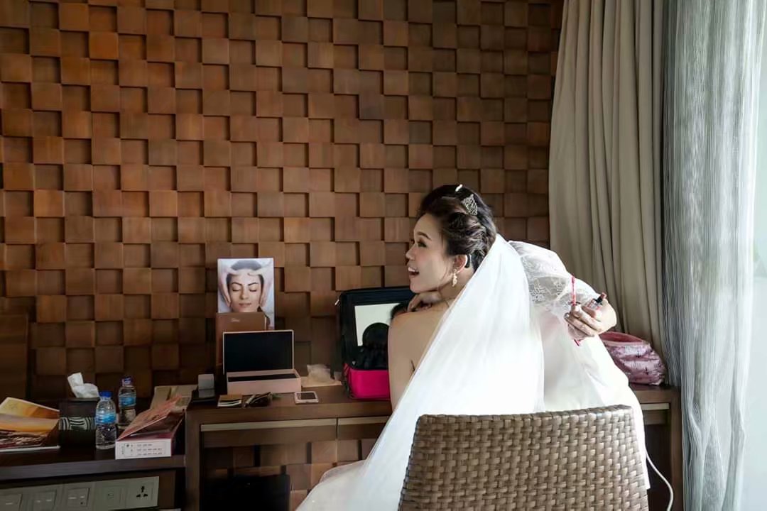 化妝完成後,她站起來,對著鏡中的自己輕輕一笑,眼中閃爍著幸福的光芒。每個細節都在預示著即將到來的那個動人時刻——她將與心愛之人首次四目相對,分享這一天最純粹、最真摯的愛與承諾。