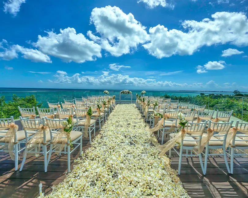 AYANA SKY 婚禮以其令人驚嘆的海天一線景觀和獨特的開放式舞台設計,成為新人心目中實現夢幻婚禮的首選場地。在這片壯麗的自然背景下,新人可以在無邊的海洋與藍天的見證下,共同許下永恆的愛情承諾。