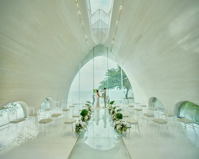 這座教堂被譽為玻璃建築的經典之作,其設計讓人能夠180度無遮蔽地眺望壯麗的印度洋景色。教堂內配備先進的空調設備,在舒適宜人的環境中,讓您與摯愛一同完成夢想中的婚禮。