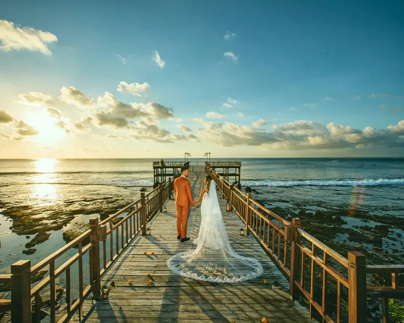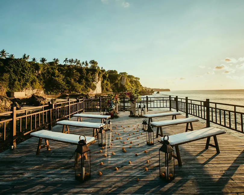 在峇里島阿雅娜度假酒店,KISIK 棧橋婚禮為您打造一場如夢似幻的浪漫婚禮。這裡是峇里島唯一的私人碼頭,坐落於壯麗的海岸線之上。隨著日落的餘暉灑滿海面,神秘而迷人的氛圍為您的婚禮增添無與倫比的浪漫。
