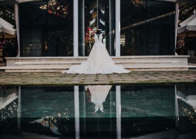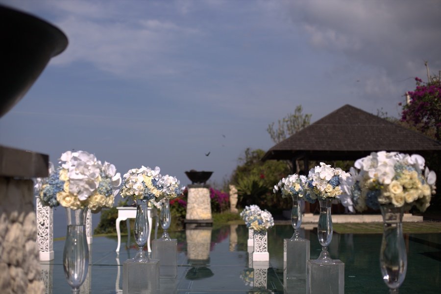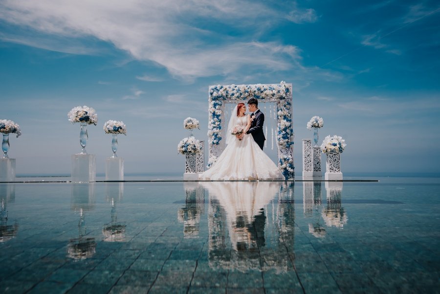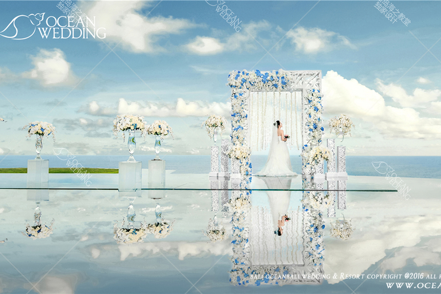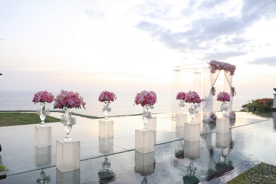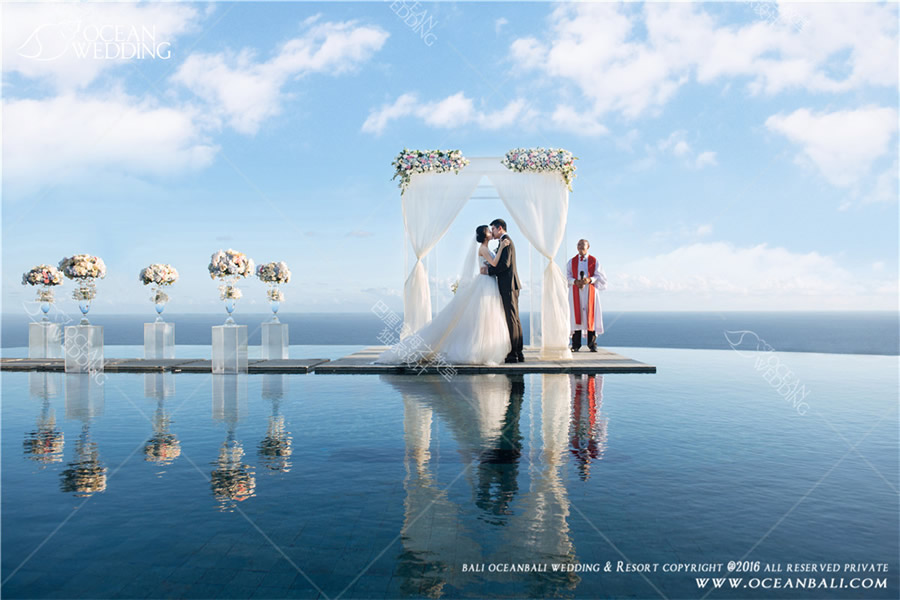峇里島水台婚禮一直被眾多新娘所鍾愛,特殊的色彩與水面會形成一面天空之鏡,在不同的時間和天空下,把一切美麗的景象在水中倒映的清晰透明,你的美麗婚禮,心愛的愛人,都在這天空之鏡下變得更加的浪漫美麗。