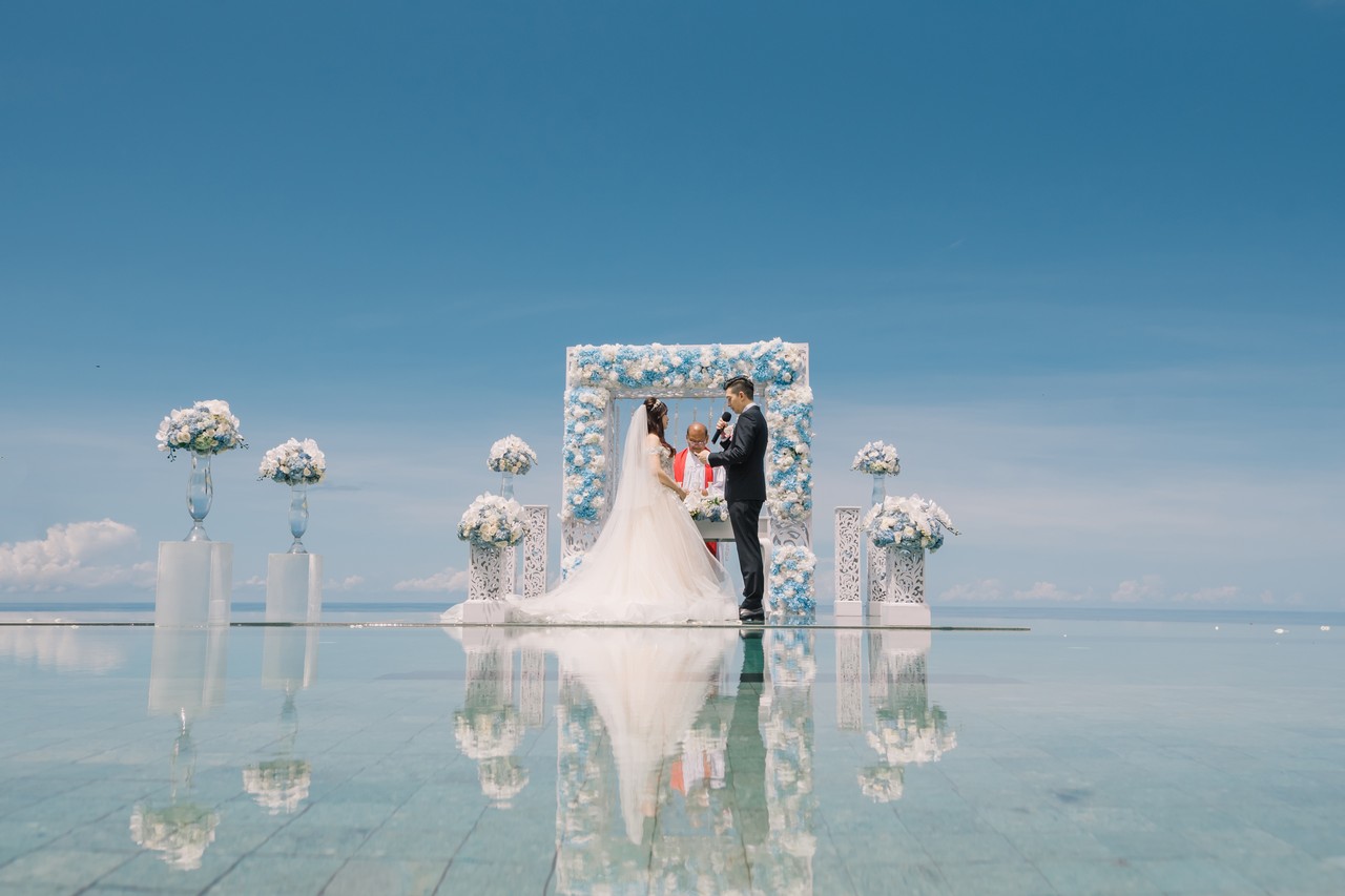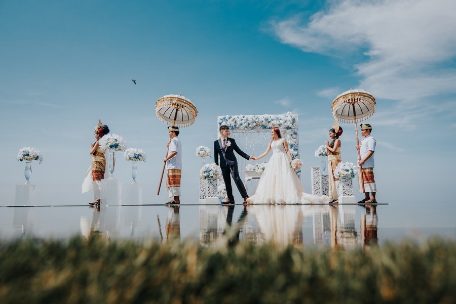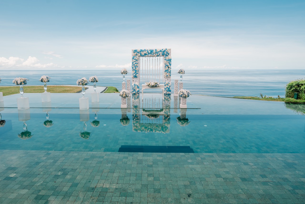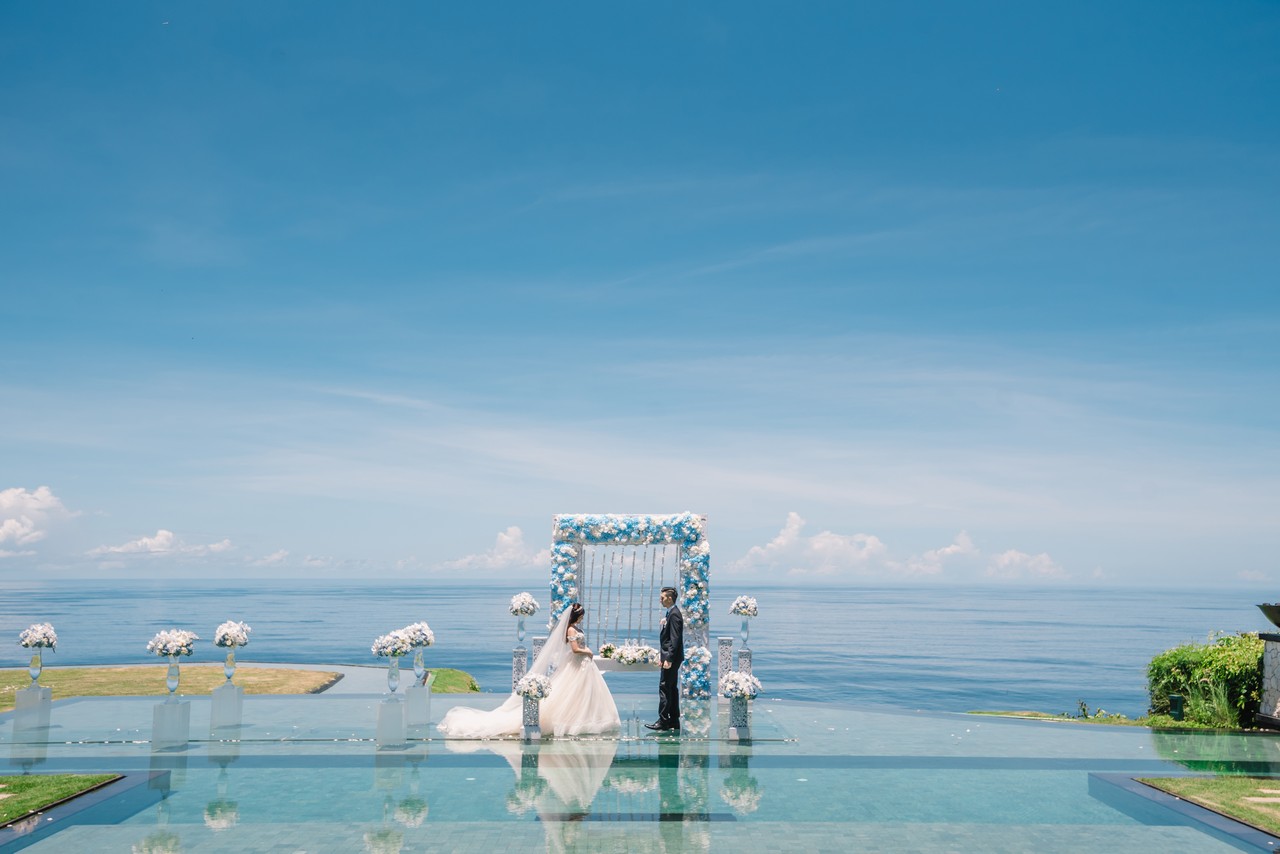 峇里島浪漫的水台婚禮。適合舉辦2人的小型婚禮以及100名賓客以下的中型婚禮。在這裡舉辦婚禮的同時還可以拍攝無邊鏡面水台、百米夕陽懸崖、雲端夢幻草坪、奢華海景別墅等圍繞婚禮主題設計的美麗景觀。為您創造一場完美的婚禮,並留存完美珍貴影像回憶。