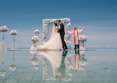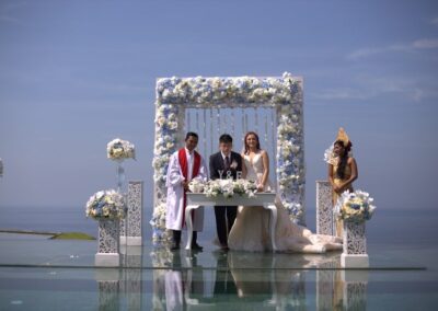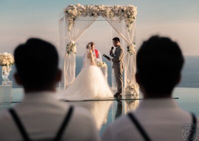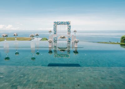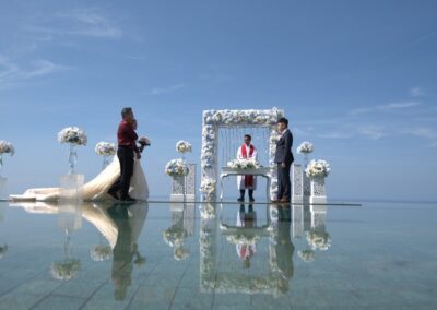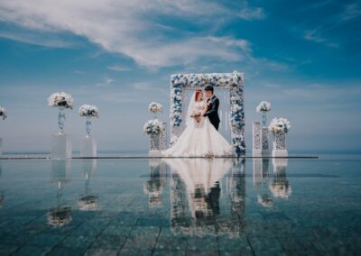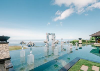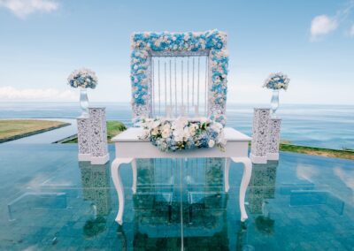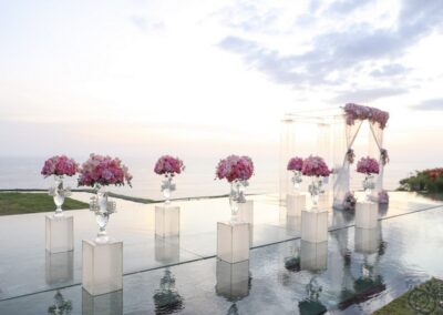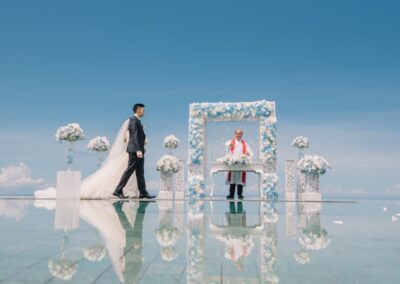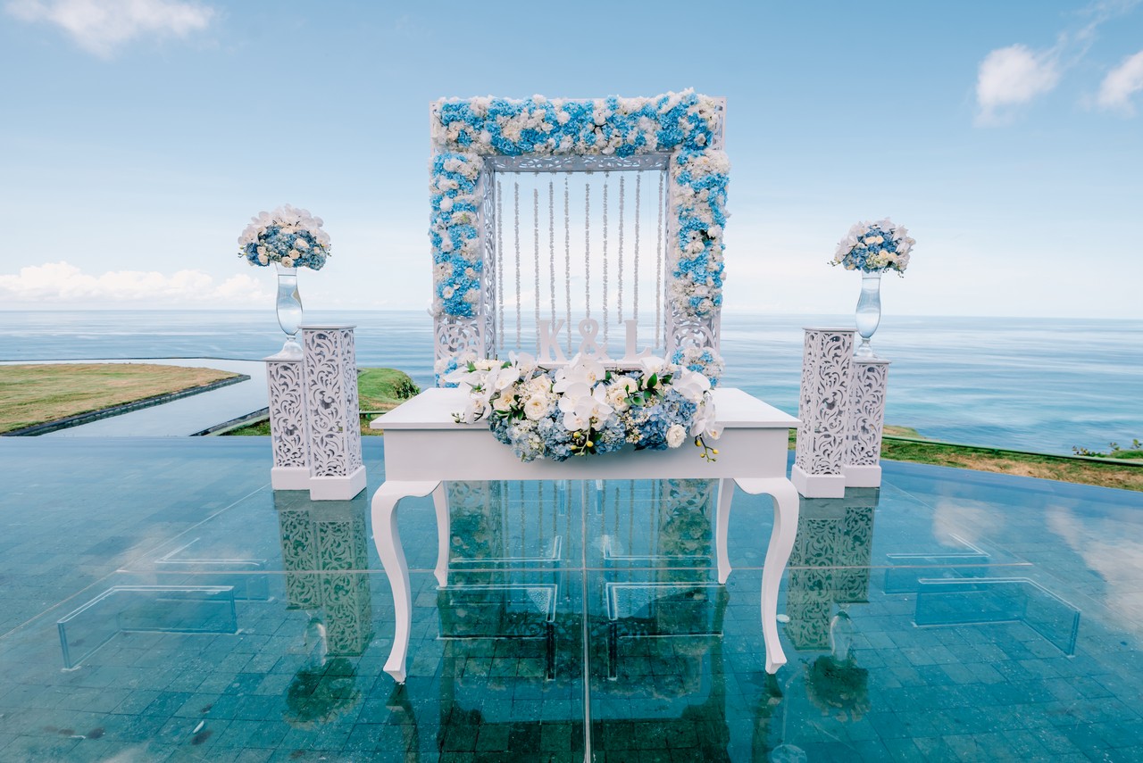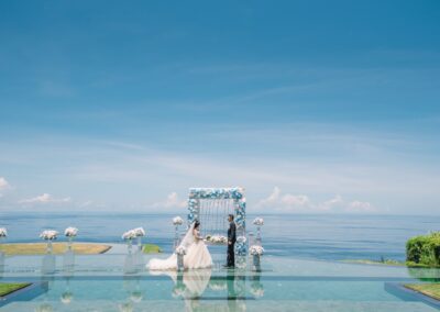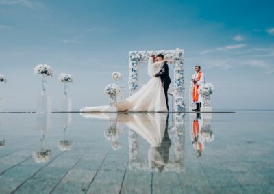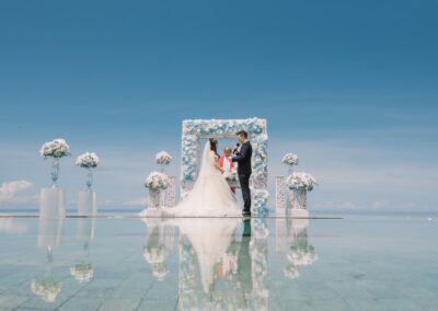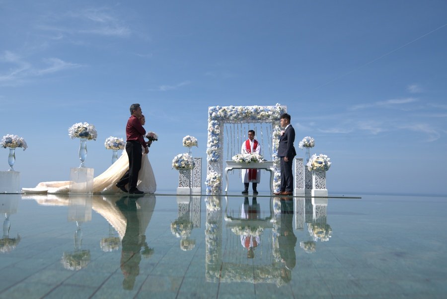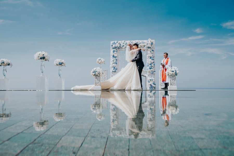 峇里島浪漫的水台婚禮。適合舉辦2人的小型婚禮以及100名賓客以下的中型婚禮。在這裡舉辦婚禮的同時還可以拍攝無邊鏡面水台、百米夕陽懸崖、雲端夢幻草坪、奢華海景別墅等圍繞婚禮主題設計的美麗景觀。為您創造一場完美的婚禮,並留存完美珍貴影像回憶。
