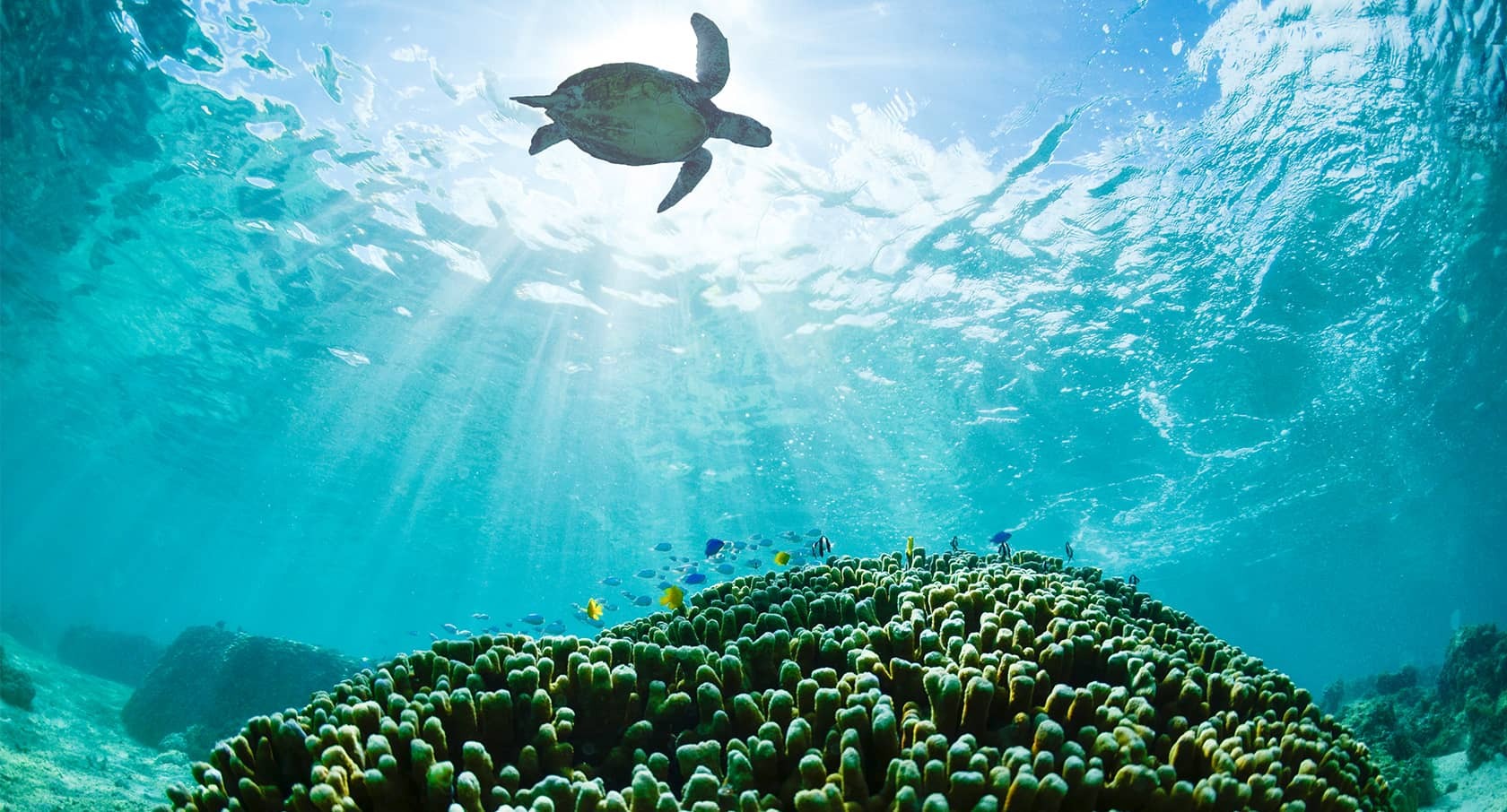 隨風搖曳的南國樹木群花,海龜自在悠游的潟湖。