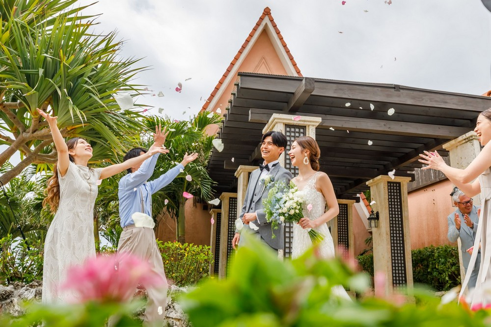 在這樣的場景中,親友們歡笑灑下花瓣,陽光在每一幀照片中閃耀,構築出一場無與倫比的海島婚禮。