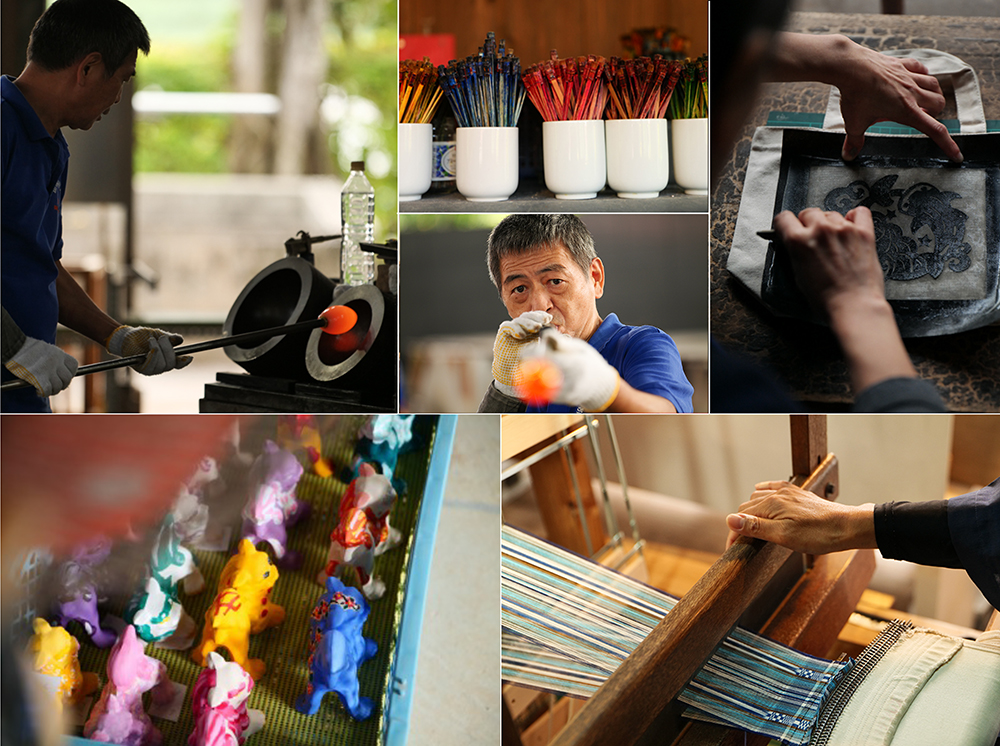 沖繩政府以玉泉洞為中心,規畫出周邊10個主題區域,統稱為”王國村”,展示了沖繩當地,如陶瓷、紅型染、藍染、造紙、製糖、釀酒、手制樂器、玻璃工房等傳統工藝,還有熱帶果樹園、龜殼花公園、100年以上的美麗紅瓦古民宅比鄰而居,形成琉球古民家聚落。可在這些國家指定登錄有形文化財的古宅中,製作傳統工藝品。猶如走入首里的城下町似地,時光彷彿回溯到從前。