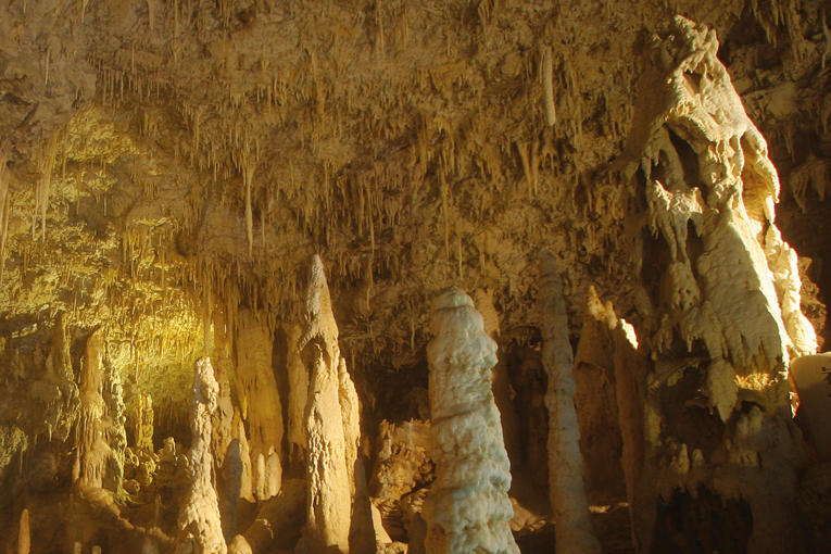 沖繩玉泉鐘乳石洞(Gyokusendo Cave)是位於日本沖繩本島南部的一個著名觀光景點,是一個巨大的鐘乳石洞,長約5公里。洞內有著數量龐大、形狀各異、令人驚嘆的鐘乳石和石筍,是一個令人震撼的地下自然奇景。進入洞內後,遊客可以感受到清涼的空氣和平靜的氛圍。洞內的光線昏暗,但有照明設備,能夠突顯出洞壁上的鐘乳石和石筍的美麗形狀。此外還有其他形狀奇特的石柱、石筍和石筒等,形成了一個壯觀的地下風景。除了鐘乳石外,洞內還有一些地下河流和池塘。其中最著名的是一個名為「青龍池」的地下湖泊,其清澈的湖水呈現出深藍色,非常美麗。此外,遊客還可以參觀一些展示區,了解鐘乳石的形成和沖繩本島的地質歷史。