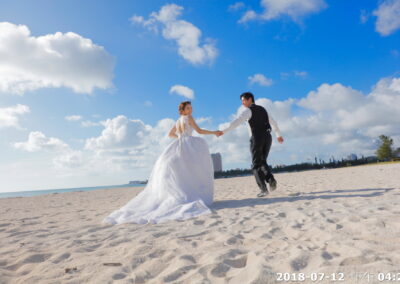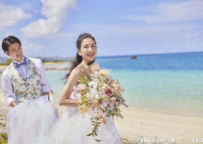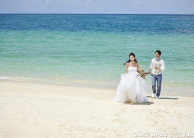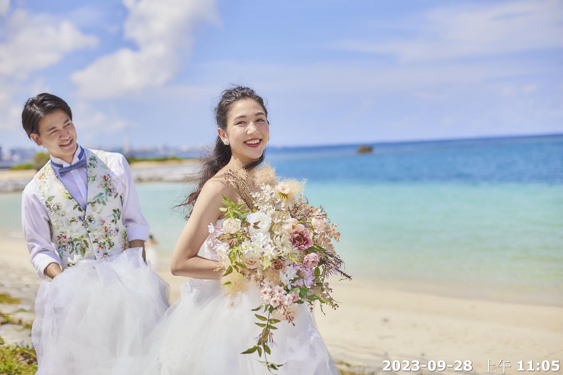 透過奔跑、牽手、回眸與花束特寫,攝影師將捕捉新人專屬的甜蜜瞬間,把沖繩的陽光、海風與幸福感,一同留存在照片裡。