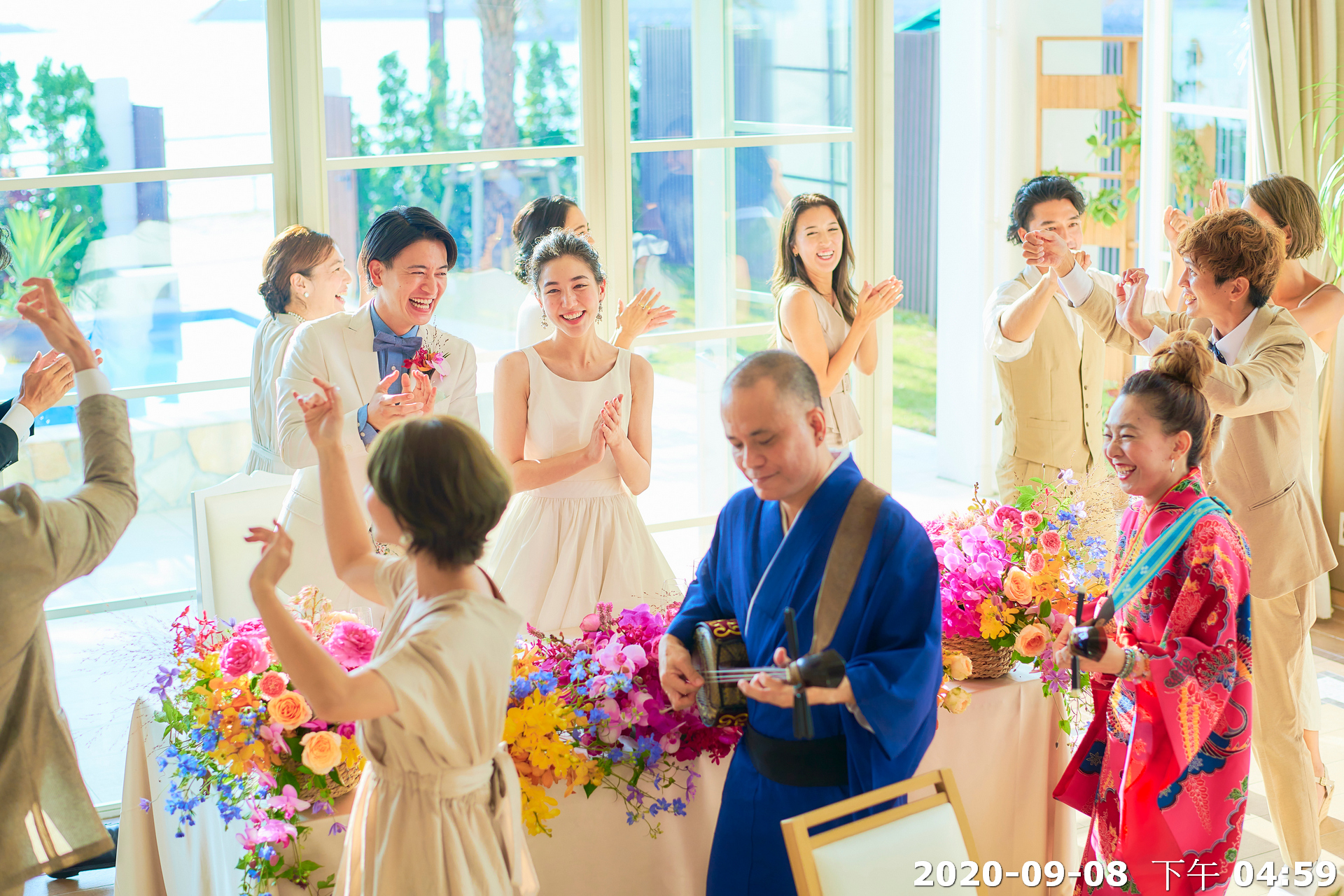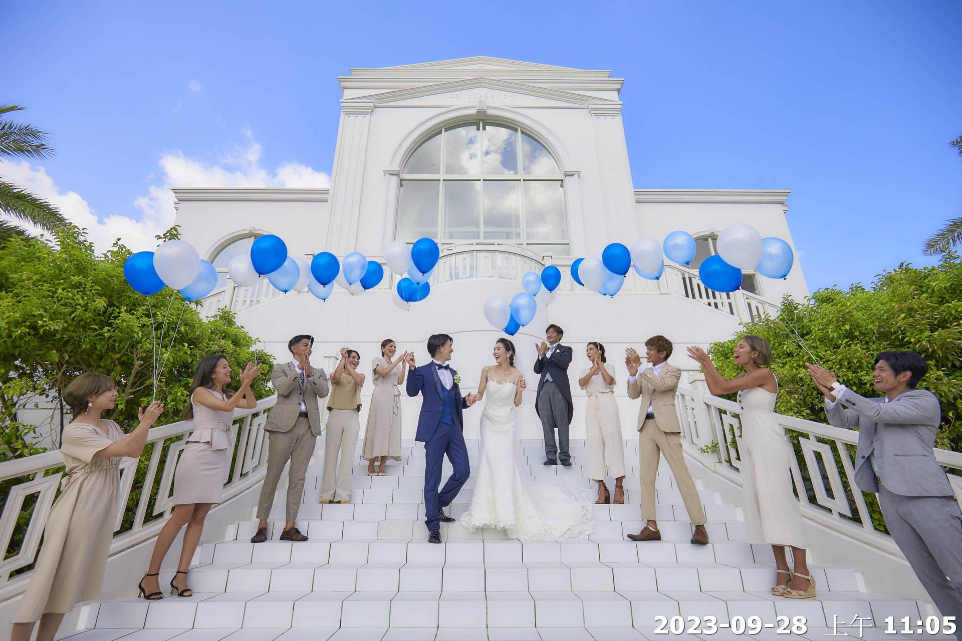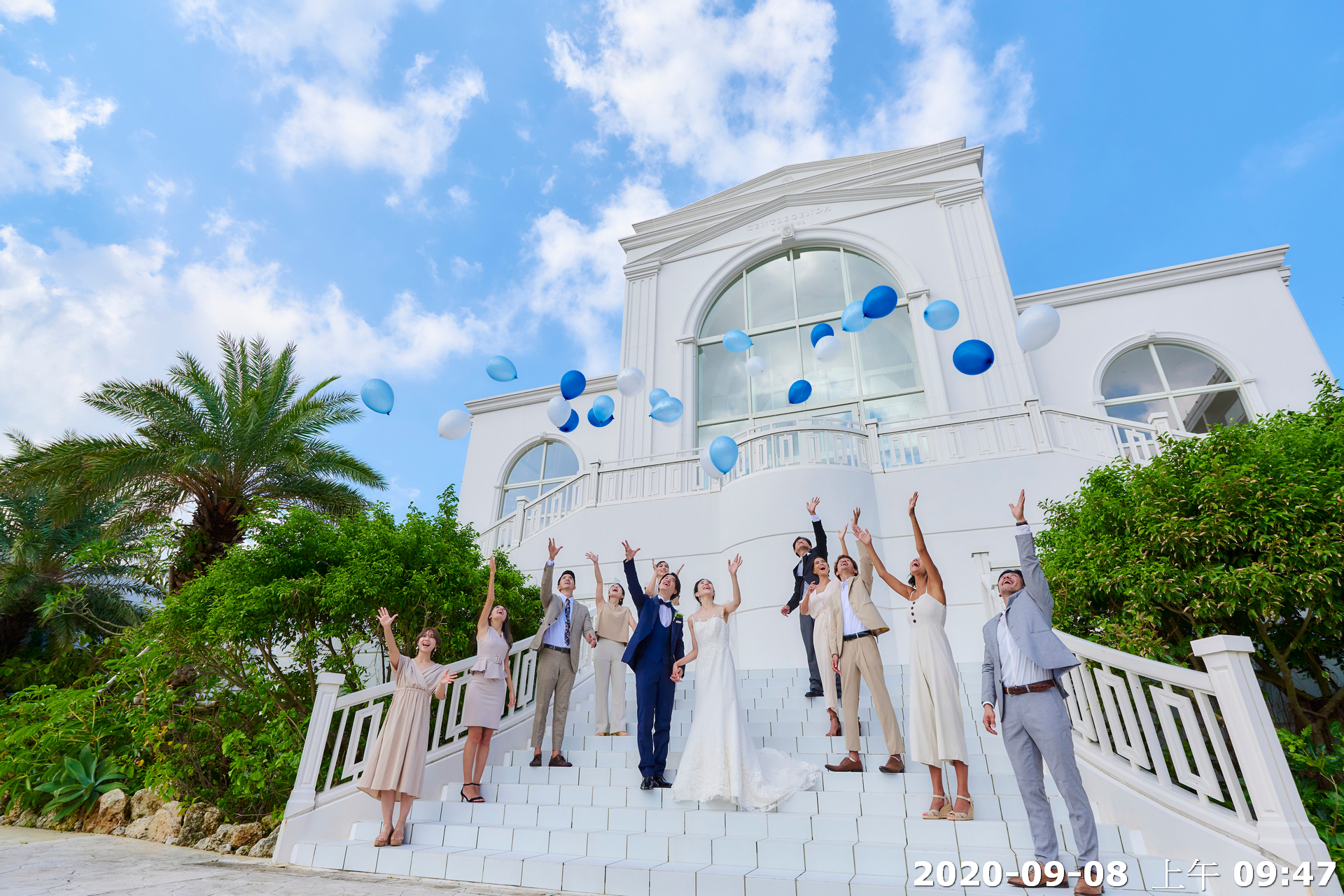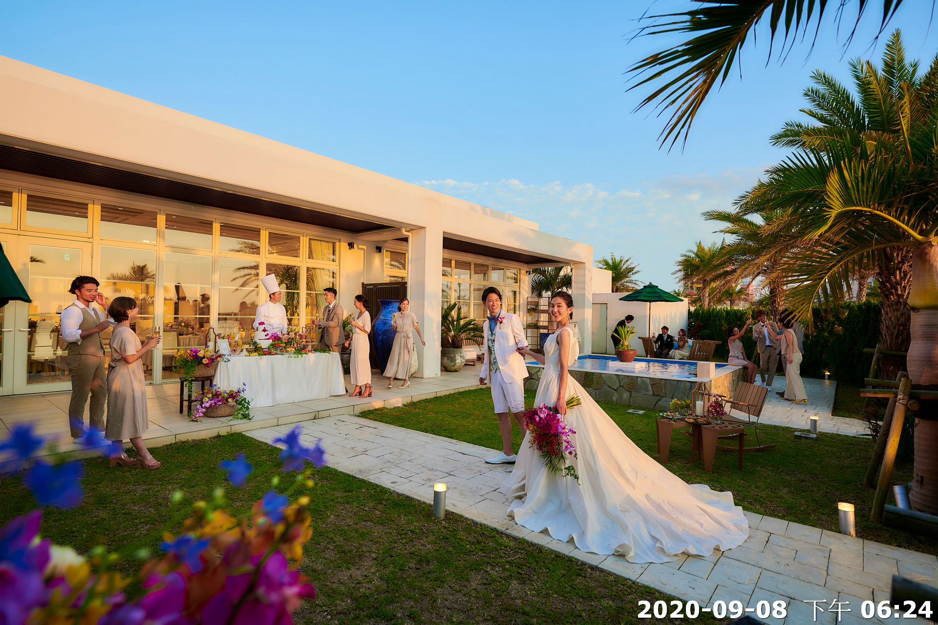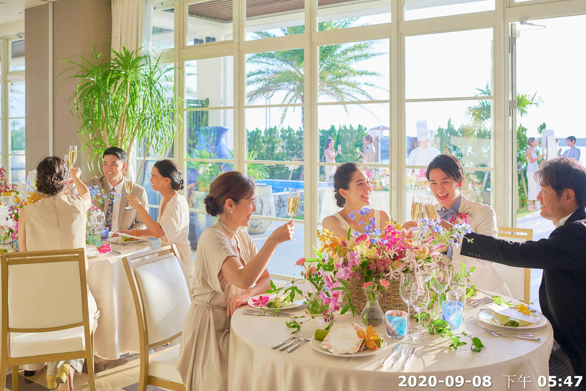 地點:位於沖繩海邊,擁有大片落地窗,可直接欣賞熱帶海景與椰子樹景致。結合教堂儀式與婚宴空間的一體式婚禮場館,新人可以在同一地點完成儀式與宴會,無需移動。