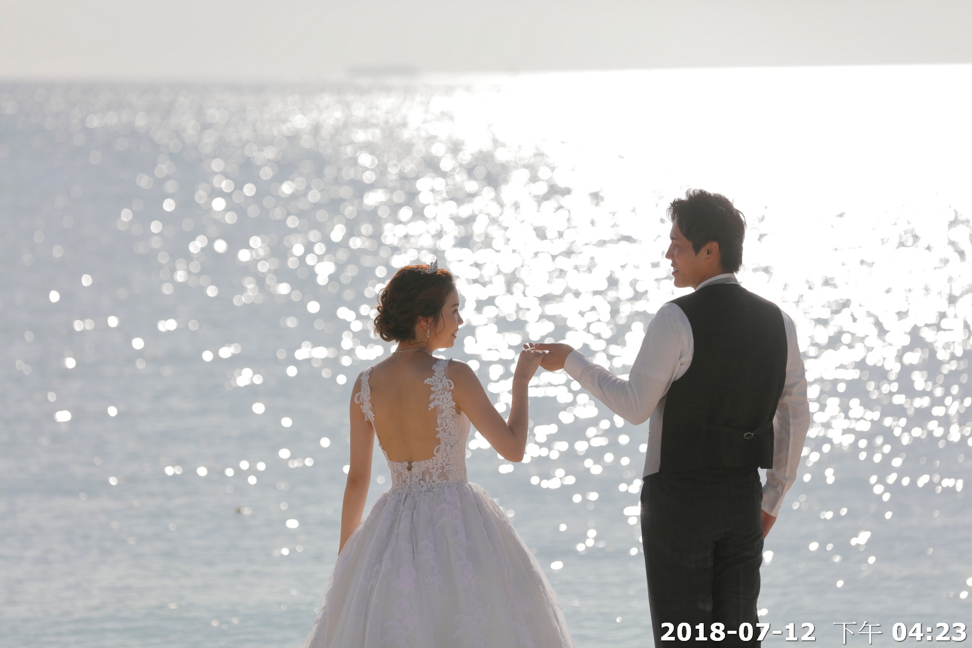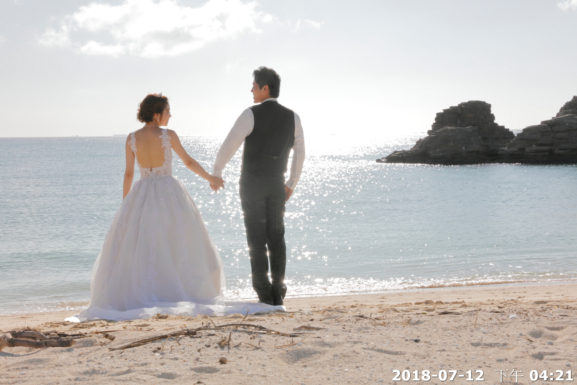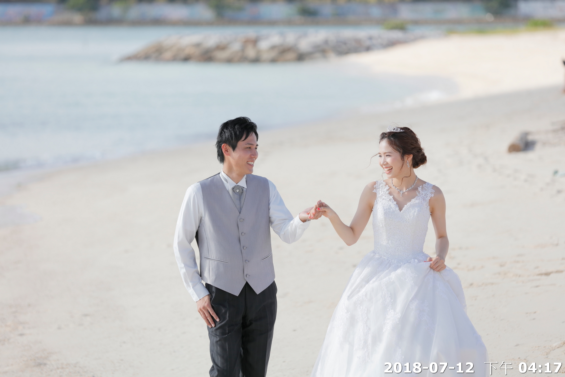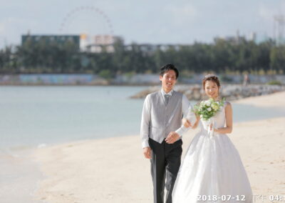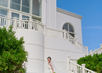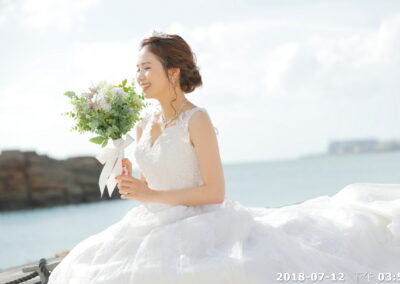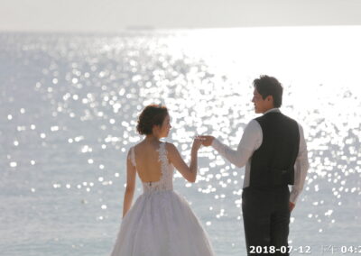 前往距離教堂不遠的美麗沙灘,進行海灘拍照.潔白沙灘、湛藍海洋,搭配新人最自然的笑容與互動,讓婚禮的浪漫不僅停留在聖堂內,更延伸到大海與天空之間。