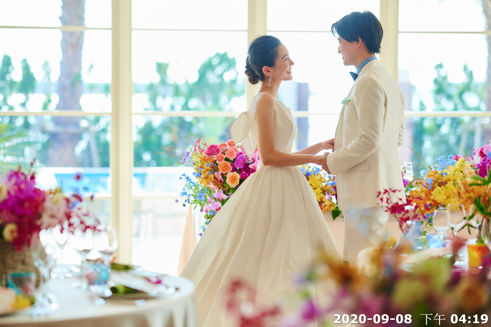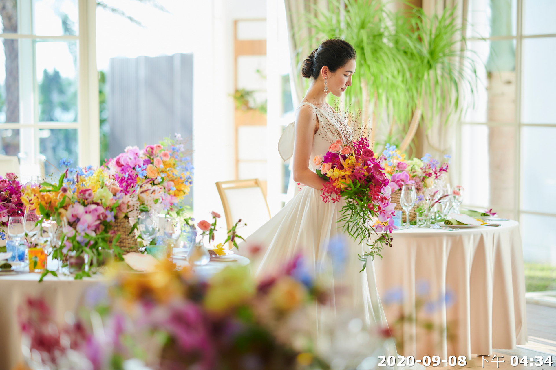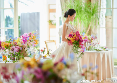 布置彈性:可搭配繽紛熱帶花卉(照片 1,2),呈現熱情歡快氛圍。(佈置為加購)亦可選擇清新白綠系花藝,展現典雅純淨感。