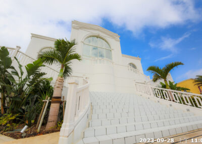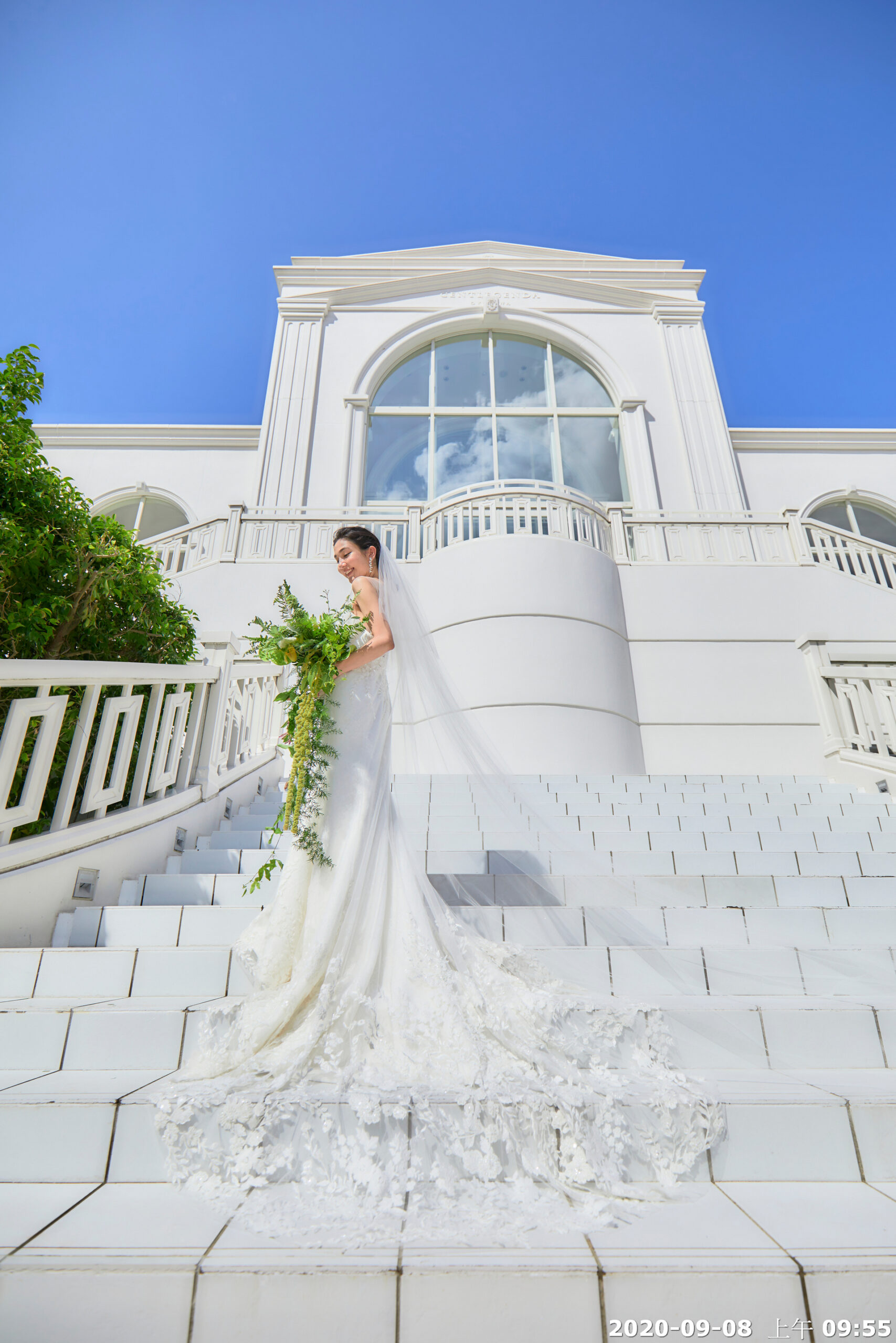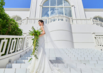 步出室外,有如同電影場景的潔白歐風長階梯,順延階梯而下,感受如渡假村般開放感十足的教堂腹地,可讓新人賓客灑放花瓣慶祝、並盡情拍照同樂。